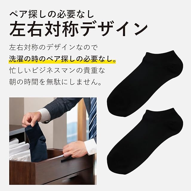 【乾きやすい素材】速乾性に優れた素材は綿よりも数倍乾きやすく急な雨に濡れた後や宿泊先で手洗いした後でもすぐに乾かすことができます。ペア探しの必要のない左右対称デザインは忙しいビジネスマンの貴重な朝の時間を無駄にしません。