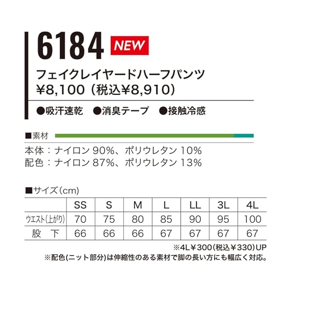 ハーフパンツにコンプレッション素材を レイヤードした重ね着風のスタイリッシュな一着。 吸汗・速乾と冷感コンプレッション素材で暑い季節でも 快適に作業することができます。 ※コンプレッションは取り外し不可
