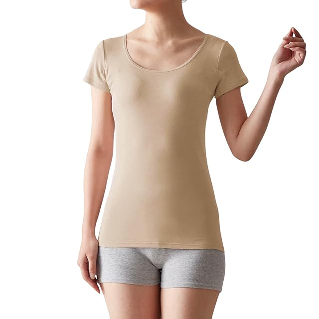 [ベルメゾン] 汗取りインナー レディース 綿 フレンチ袖 消臭 インナーシャツ サラリスト サンドベージュ L
