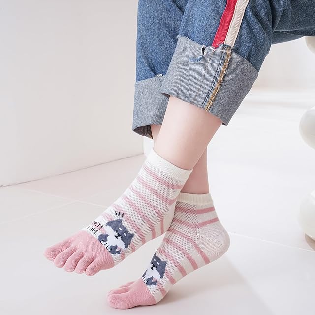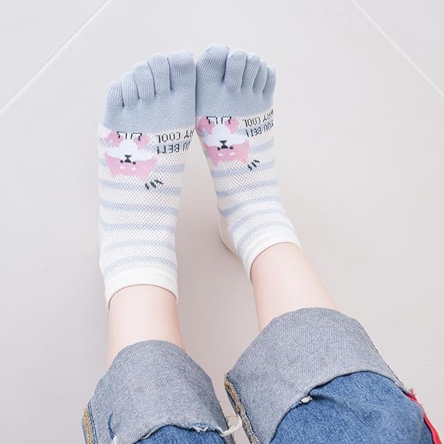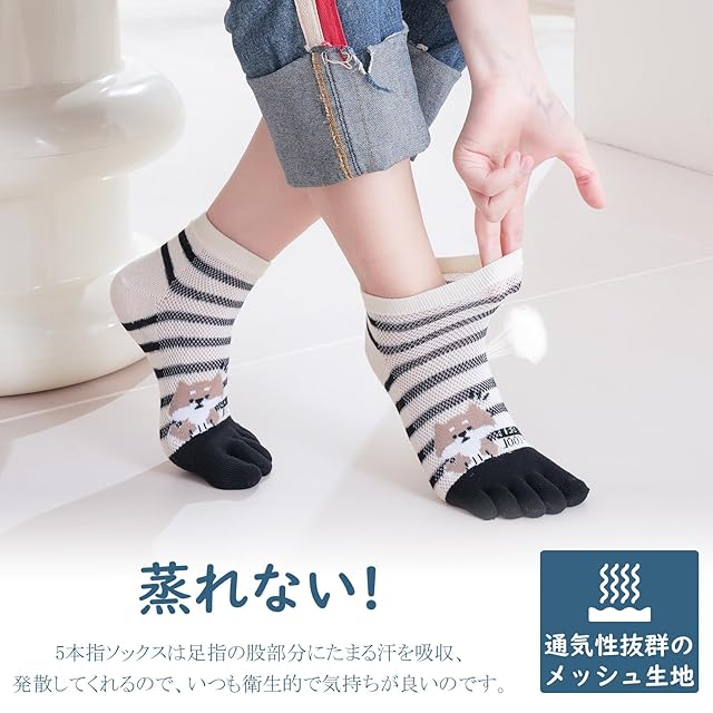 [ETARLOS] 五本指ソックス レディース かわいい 5本指靴下 くるぶし 夏用 薄手 メッシュ ショート くつした 綿 蒸れない 通気性 犬柄 22-25cm 5足セット