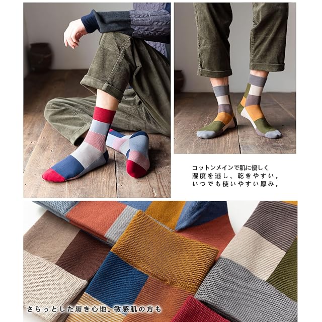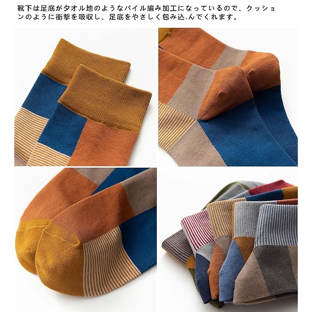 【お洒落なデザイン】5足すべて異なるデザイン・カラーバリエーションのため日替りで履いて飽きないのも魅力です ,丁度良い厚さと長さでビジネス(スーツ)からカジュアル(普段着)運動までどんなシーンにも最適なくつ下です,靴を脱いだ時にもさりげない好感を演出 。