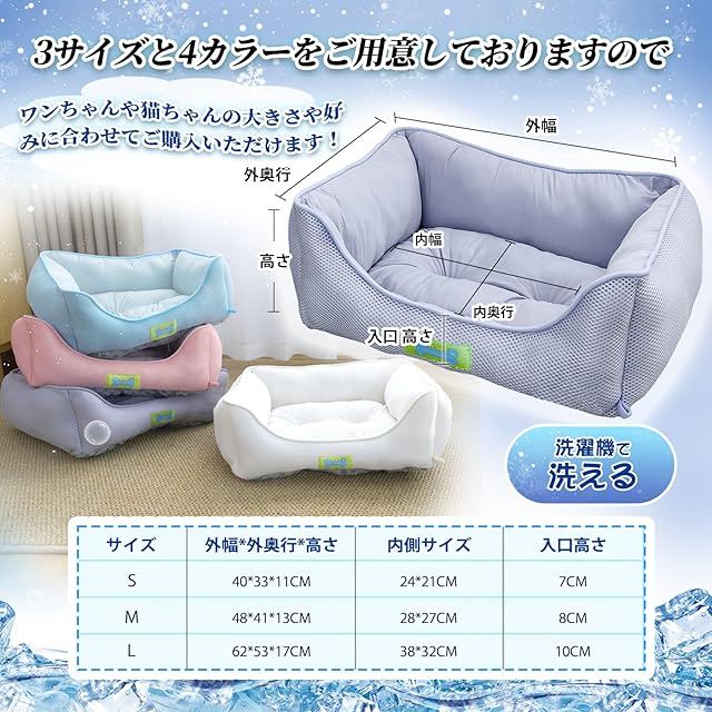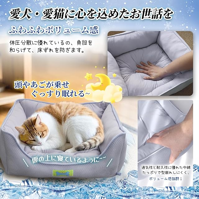 【極上冷感、持続的清涼感を】ペットベッドは、ペットの健康、安全を第一考えて快適なデザインされています。この犬 ベッド・猫 ベッドは革新的な冷感素材を採用して、Q-MAX値0.52に達します。暑い夏でも持続的な涼感効果を提供し、熱帯夜でもペットが快適な睡眠環境を楽しむことができます。