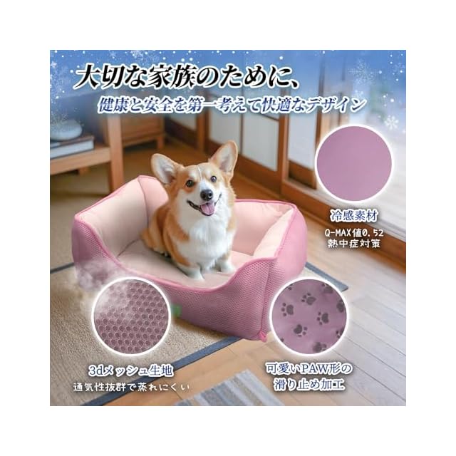 【極上冷感、持続的清涼感を】ペットベッドは、ペットの健康、安全を第一考えて快適なデザインされています。この犬 ベッド・猫 ベッドは革新的な冷感素材を採用して、Q-MAX値0.52に達します。暑い夏でも持続的な涼感効果を提供し、熱帯夜でもペットが快適な睡眠環境を楽しむことができます。