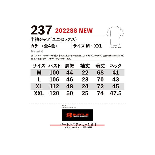2022年BURTLEの春夏新作!<br> ストレッチナイロンのドライなクールタッチ機能素材がいかなるハードワーク時も快適なフィッティングを約束<br> <br> 素材/ストレッチトリコット、吸水速乾加工、UVカット(UPF50+)、接触冷感(Q-max0.33)<br> 混率/ナイロン80%・ポリウレタン20%<br> <br> カラーラインナップ<br> 3.ネイビー 29.ホワイト 35.ブラック 68.ミルスグレー<br>