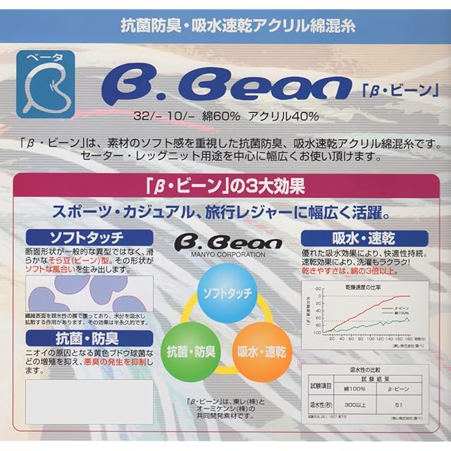 素材:綿・アクリル・ポリエステル・ポリウレタン(β・ビーン糸使用、抗菌防臭・吸水速乾加工)