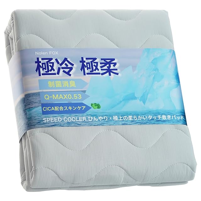 Nolen FOX 敷きパッド ダブル 夏 極冷感ひんやり敷きパッド 接触冷感 Q-MAX0.52 制菌消臭加工 nクール 敷きパッド 夏用シーツ 通気 速乾 ゴムバンド付き サラサラ ひんやり しきぱっと 吸水 速乾 熱帯夜対策 ベッドパッド (ダブル 140×200cm アイスグレー)