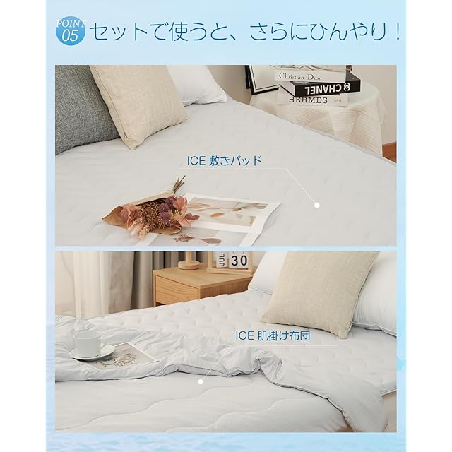 【極上冷感のタッチ】極冷感ひんやり敷きパッドは3D+7D中空綿入り中空锦職維の太さはデシテック (tex) で表します。数字が大きいほど、纖維が太くなリます。織維が太すぎるとバサバサになり、ふんわリ感がなくなります。逆に細す学るとペたリが生じやすいかさ高と通気性がなくなリます。試行錯誤の結果、3D中空締と7D中空締を一定の割合で混合して柔らかさと反発力を両立し、この軽くて暖かい布団が生まれました。