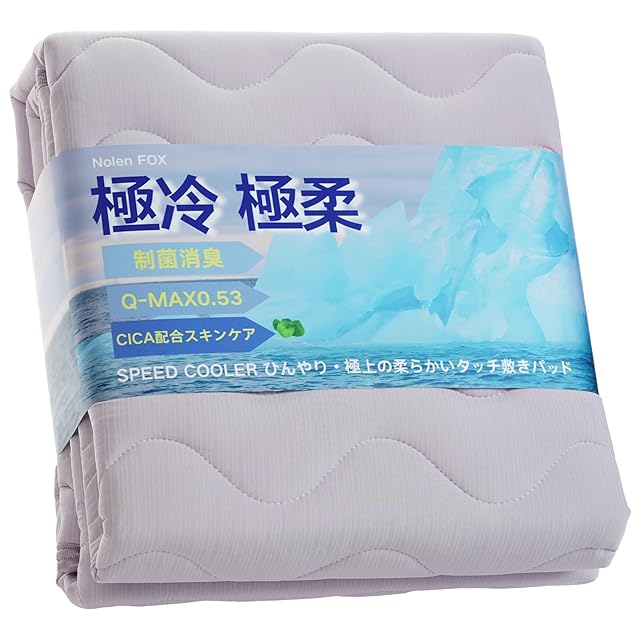 Nolen FOX 敷きパッド ゼミダブル 夏 冷感 ひんやり敷きパッド 接触冷感 Q-MAX0.52 制菌消臭加工 nクール 夏用シーツ 通気 速乾 ゴムバンド付き サラサラ ひんやり しきぱっと 吸水 速乾 熱帯夜対策 ベッドパッド(ゼミダブル 120×200cm アイスパープル)