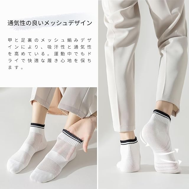 【抜群な履き心地】この製品は、脱落や毛玉が発生しにくい高品質の長繊維綿の毛玉防止生地で作られています。 甲の上はメッシュ編みです、通気性とドライ性があり快適です,汗ばむ夏でも暑くなりにくい。