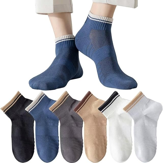 [HWVICTORYV] 靴下 メンズ くるぶし ソックス スポーツ ショートソックス 綿 通気 抗菌 消臭 夏用 薄手 メッシュ スニーカーソックス 24-27cm 6/8足セット 01