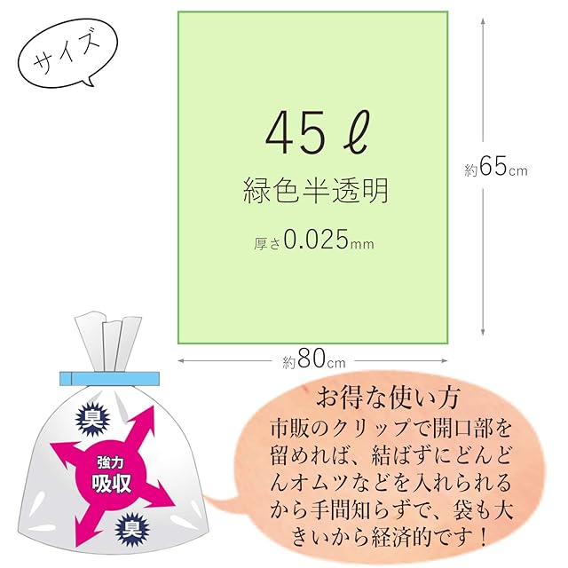ハウスホールドジャパン ゴミ袋 消臭袋 サニタリー用 10枚入×5個パック グリーン 45L AS45