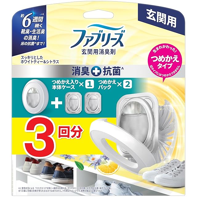 ファブリーズ 消臭芳香剤 玄関用 消臭+抗菌 ホワイトティー&シトラス 詰め替え入り本体ケース 7mL+詰め替え 7mLx2個