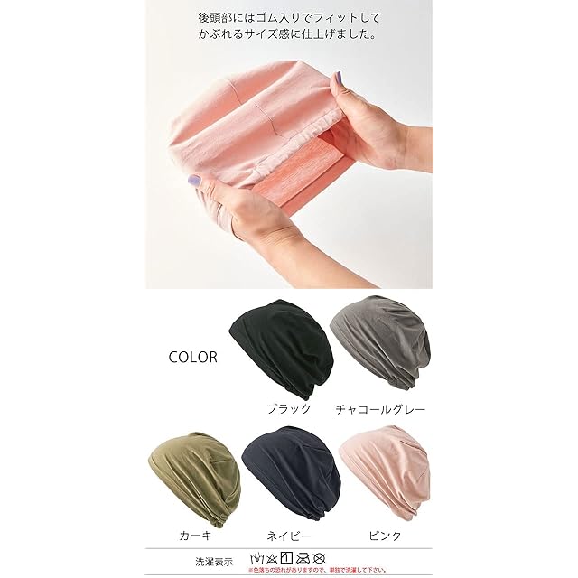 【選べる2サイズ展開】シーンに合わせてサイズが選べる薄手帽子。「Mサイズ」はぴったり、「Lサイズ」はゆったりとしたサイズ感。どちらも後頭部にはゴムが入っているのでジャストフィット。インナー帽子や洗髪できない時、ニオイが気になる時など性別・年代問わず使えます。