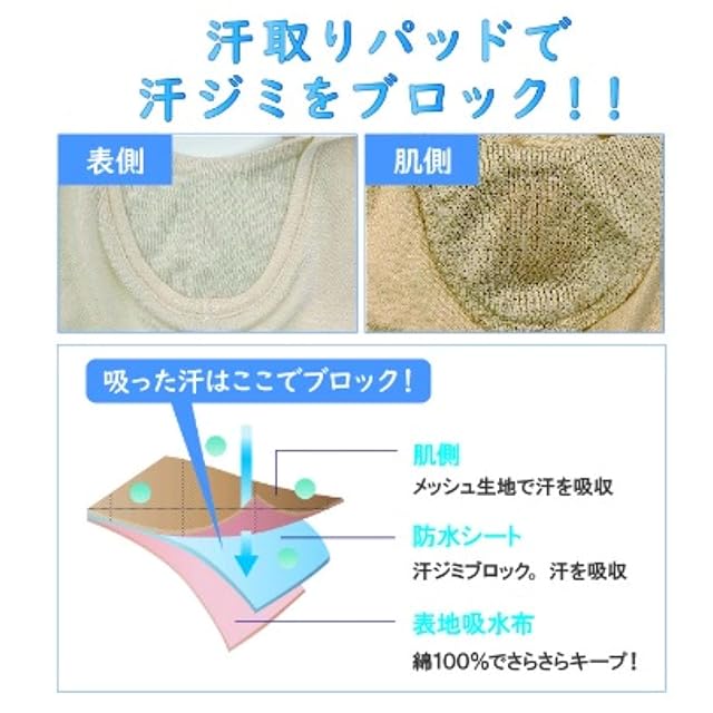 [Dialtaclothes] 新シリーズ 汗取りインナー 脇汗パッドシャツ レディース 汗取りパッド付き 汗取り 脇汗 脇汗対策 あせジミ防止 汗多め用 汚れ防止 無香料 消臭 吸湿 伸縮性があり レギュラーサイズ 大きいサイズ (3L, タンクトップベージュ)