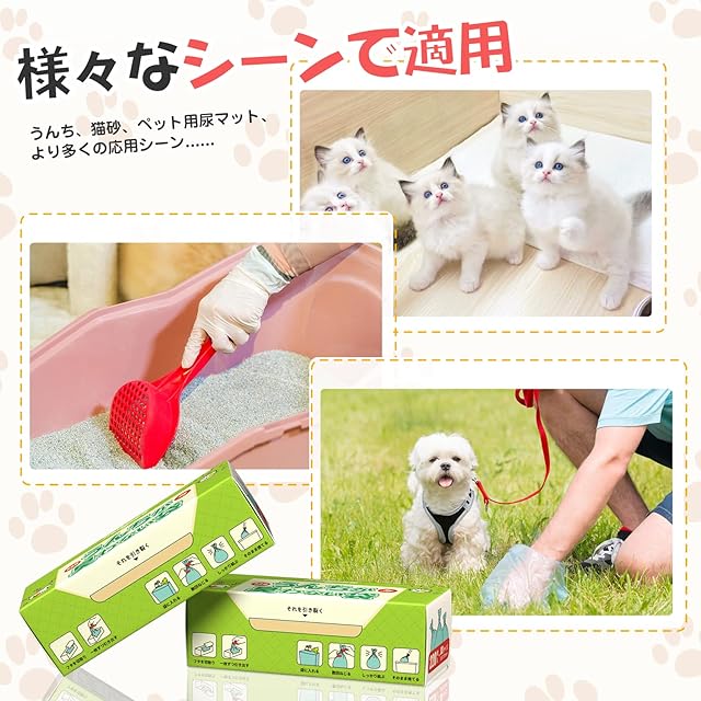 【取りやすい・使い方かんたん♪】 うんち袋はボックスティッシュのように、取りやすい。口の幅が大きいだから入れやすく使いやすい。ニオイの元を袋に入れたら、クルクルねじってキュッと結んでゴミ箱に捨てるだけ。