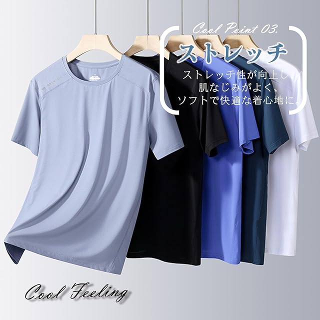 [Kozy More] 冷感 tシャツ メンズ 涼しい 半袖 機能性 消臭 吸汗速乾 DRY 抗菌 防臭ドライ リフレクター スポーツ 運動着 丈夫 ティーシャツ 夏服 (JP, アルファベット, L, LightBlue)