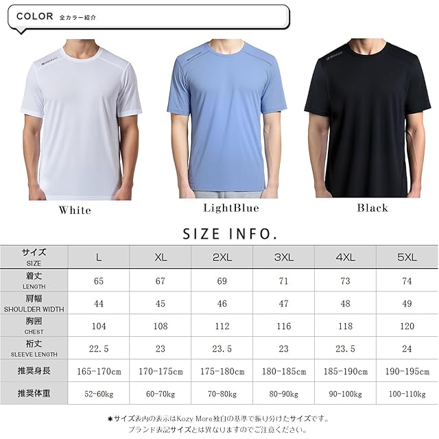 [Kozy More] 冷感 tシャツ メンズ 涼しい 半袖 機能性 消臭 吸汗速乾 DRY 抗菌 防臭ドライ リフレクター スポーツ 運動着 丈夫 ティーシャツ 夏服 (JP, アルファベット, 3XL, White)