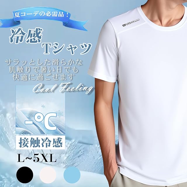 [Kozy More] 冷感 tシャツ メンズ 涼しい 半袖 機能性 消臭 吸汗速乾 DRY 抗菌 防臭ドライ リフレクター スポーツ 運動着 丈夫 ティーシャツ 夏服 (JP, アルファベット, 4XL, White)