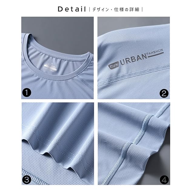 「生地感」軽い着心地で汗をかいてもべたつきにくくさらさらをキープできます。一般的なポリエステル素材とは違い、柔らかい肌触りが特徴です。デイリーTの最大んの魅力である伸縮性ももちろん備えていますので身体にフィットし、着心地も快適です。