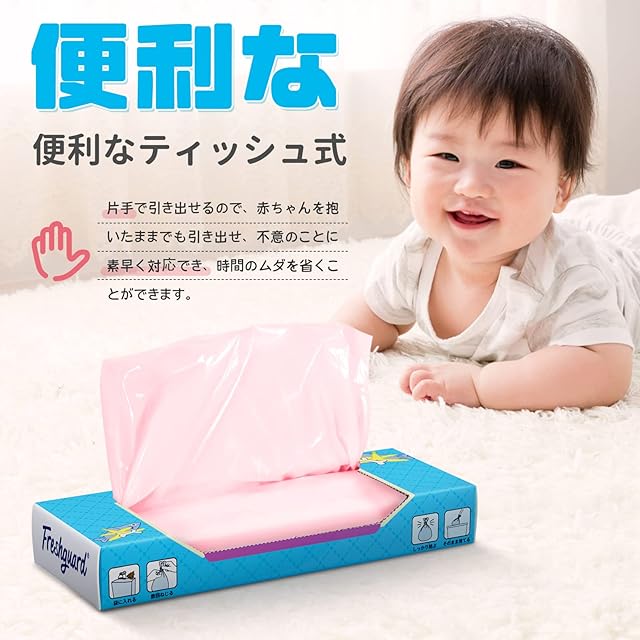 【便利・簡単・環境に優しい】画像のような完成形で開封したあと即使用は可能です。取り出しやすくてすぐに持ちだせる優しい設計で、一枚取ると次が出ることになっています。オムツなどの臭いゴミを防臭袋にいれて袋の口を数回ねじり結んだ後処理するだけ、特にペットのうんちを処理する際にワザワザトイレに流すことは不要なので時間も水も大幅に省けて、砂(猫砂)などの不溶物が付いていることや排水管を詰まらせるおそれもありません。