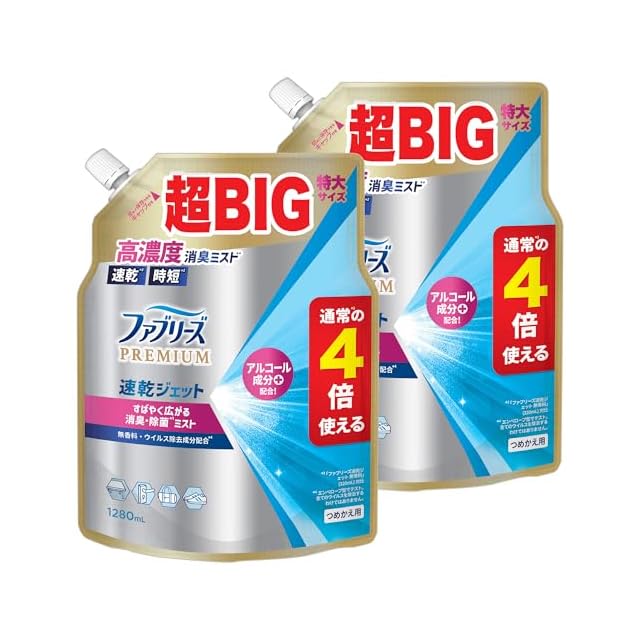 ファブリーズ 【まとめ買い】速乾ジェット 無香料アルコール成分入り つめかえ超特大サイズ 1280ml×2