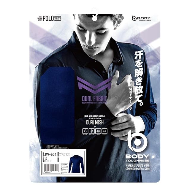 おたふく手袋(Otafuku Glove) ポロシャツ 長袖 デュアルメッシュ [吸汗速乾 消臭 メンズ] JW-604 ネイビー LL