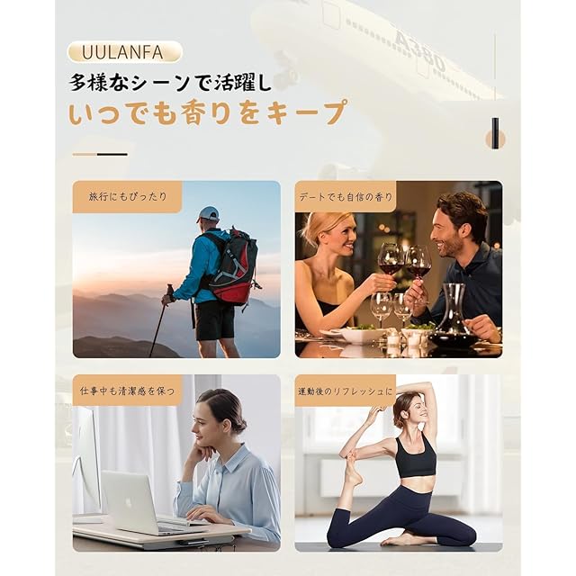 香水アトマイザーは、携帯性と使いやすさを重視した設計です。独自の底部充填システムにより、香水の補充が簡単で迅速。漏れ防止設計により、安心して持ち運びができます。高精度ナノミスト技術を採用し、細かいミストを均一に噴霧します。これにより、肌に優しく、香りを長時間楽しむことができます。 香水アトマイザーは、コンパクトなリップスティックサイズで設計されており、ポーチやバッグに簡単に収納できます。旅行や外出時に最適で、スペースを取らずに持ち運びが便利です。耐久性のある高品質な素材を使用しており、長期間の使用にも耐えられます。軽量で持ち運びが簡単なため、日常生活の様々なシーンで活躍します。 香水アトマイザーは、旅行、出張、デート、日常使用など、どんなシーンでも便利に使えるアイテムです。大切な人へのプレゼントにも最適です。持ち運びが簡単で、いつでもどこでもお気に入りの香りを楽しむことができます。