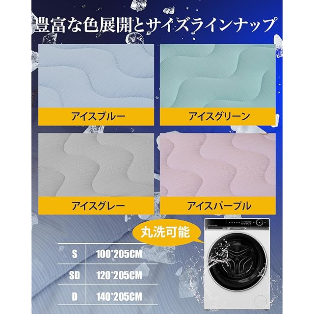 【極上冷感のタッチ】極冷感ひんやり敷きパッドは3D+7D中空綿入り中空锦職維の太さはデシテック (tex) で表します。数字が大きいほど、纖維が太くなリます。織維が太すぎるとバサバサになり、ふんわリ感がなくなります。逆に細す学るとペたリが生じやすいかさ高と通気性がなくなリます。試行錯誤の結果、3D中空締と7D中空締を一定の割合で混合して柔らかさと反発力を両立し、この軽くて暖かい布団が生まれました。