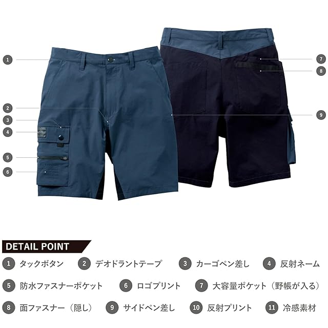 夏に便利な吸汗速乾加工と防水ポケット付き多ポケットパンツ
