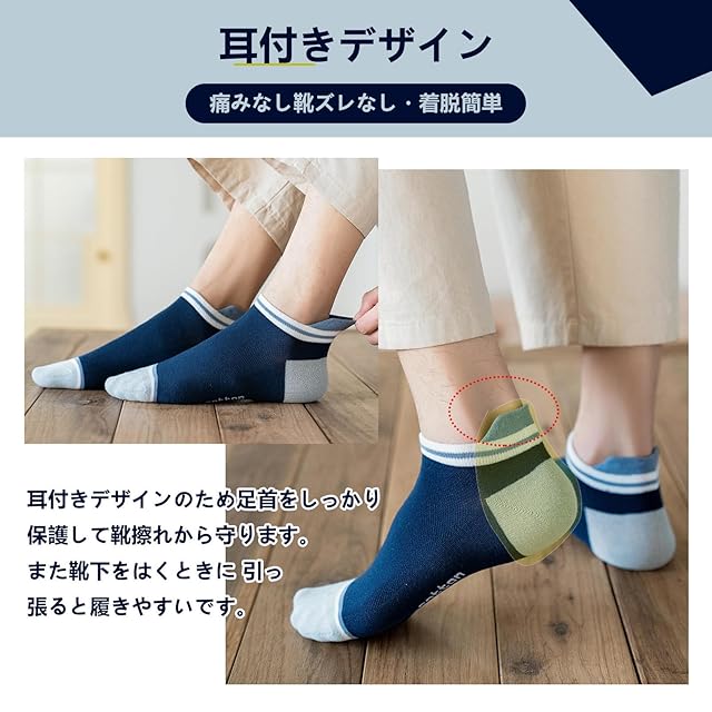 【抜群な履き心地】ロールエッジがなく、滑り落ちない、かかとへの負担を和らげる。丈夫で割れにくく、毛羽立ちにくい 肌に優しく、通気性、防臭性に優れ、社会的な恥ずかしさを避けることができる。一体化縫製デザインを採用し、踵と靴の摩擦を軽減し、履き心地が良くなり、耐久性も優れています。