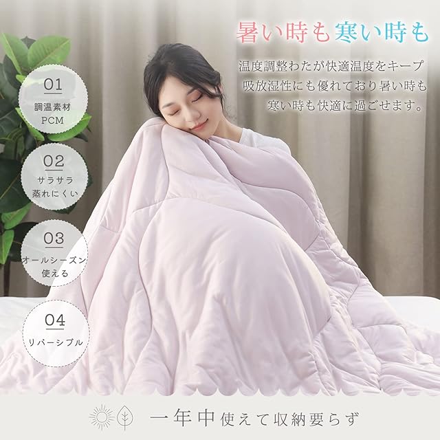【一年中・丸洗いOK】布団を丸洗いできるので、暑い時期にも寒い時期にも快適にオールシーズン使えます。無蛍光洗剤を使用し、洗濯ネットに入れて単独洗いをお願いいたします。乾燥機の使用はお避け下さい。 ※掛け心地の良さを最大限引き出すには、そのまま使うのがおすすめです。布団カバーを掛けることを想定しておりませんので繋き止めるカバー用ループは付いておりません。