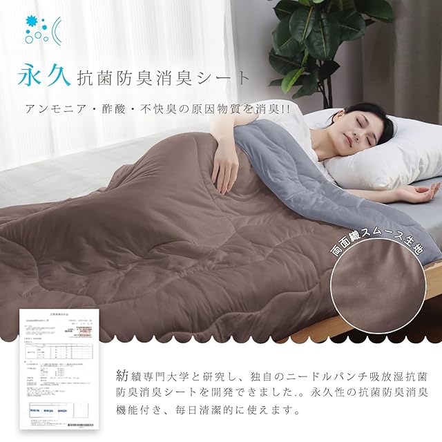 【吸放湿性・永久抗菌防臭消臭シート】紡績専門大学と研究し、独自のニードルパンチ吸放湿抗菌防臭消臭シートを開発できました、ポリエステル60%、レーヨン30%、合成繊維(アクリレート)10%の組成で、吸放湿調湿抜群、更に永久性の抗菌防臭消臭機能付き、毎日清潔的に使えます。
