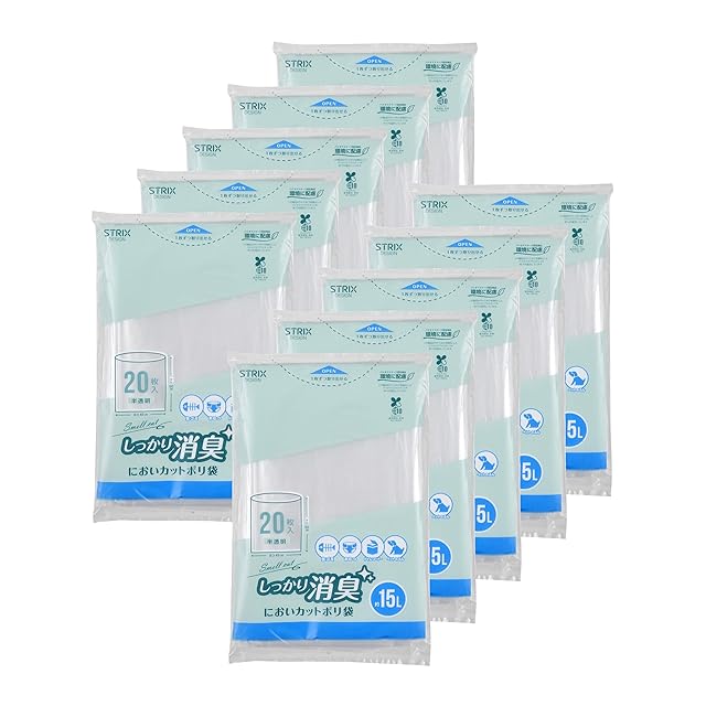 【Amazon.co.jp 限定】ストリックスデザイン 消臭袋 15L 20枚×10個セット 半透明 しっかり消臭 バイオマス10% においカット ゴミ袋 生ゴミ トイレコーナー おむつ SA-242Z
