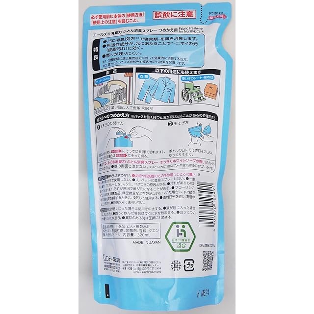 エールズ 消臭力 介護用消臭剤 [まとめ買い] 介護用 ふとん用 消臭スプレー すっきりホワイトソープ つめかえ 320mL×3個セット 介護 介護用品 消臭剤 消臭 芳香剤