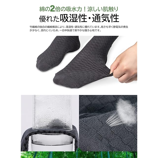 ◎「蒸れない設計」:綿の2倍の吸水力と乾きやすいという特性を持つ天然竹繊維を使用して作られており、蒸れやすい夏場でもさらりとした履き心地を実現します。また、使い心地はさわやかで、一度履くと手放せなくなります。