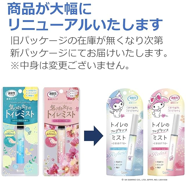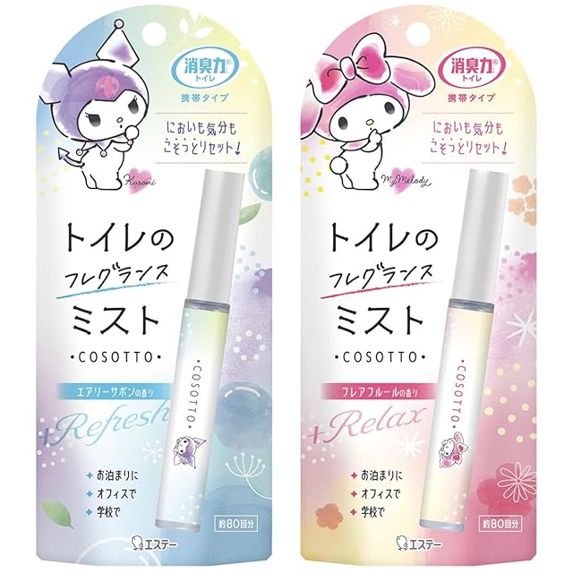 消臭力 トイレ 携帯タイプ [香り2種アソートパック] トイレ用 消臭ミスト スプレー (エアリーサボン・フレアフルール) 9mL×2個 消臭剤 消臭 芳香剤 消臭スプレー コソット 携帯ミスト サンリオ クロミ マイメロ