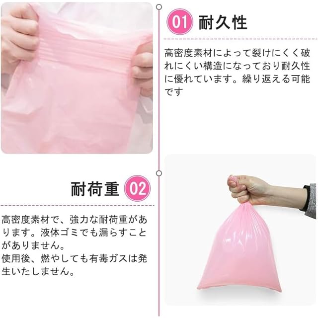 【素材】特殊で地球に優しいポリエチレン(PE)素材とEVOHフィルム(防臭フィルム)7層フィルム共押出によって、袋の口をきちんと縛ると、鼻を近づけてもほどんど臭いを感じない 圧倒的な防臭力を持っています! 【使用方法】ゴミを袋に入れたあとは口を数回ねじて、しっかり結んください。しっかり結ばないと臭 い漏れの原因となりますのでご注意ください。