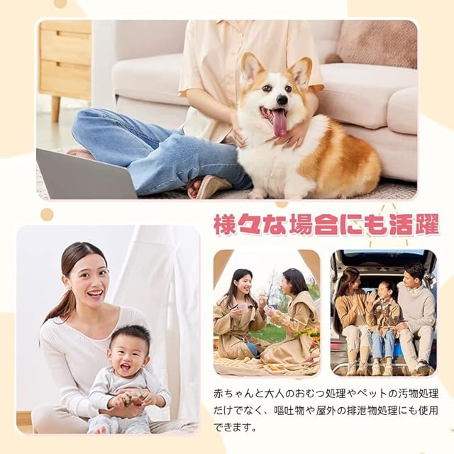【便利・簡単・環境に優しい】画像のような完成形で開封したあと即使用は可能です。取り出しやすくてすぐに持ちだせる優しい設計で、一枚取ると次が出ることになっています。オムツなどの臭いゴミを防臭袋にいれて袋の口を数回ねじり結んだ後処理するだけ、特にペットのうんちを処理する際にワザワザトイレに流すことは不要なので時間も水も大幅に省けて、砂(猫砂)などの不溶物が付いていることや排水管を詰まらせるおそれもありません