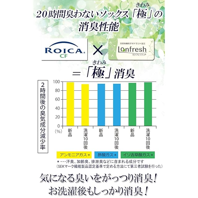 ✨ありがとうございます!2019年1月~Amazon's Choice取得✨※裏返したときに足の指付け根部分にある糸は、ほどけ防止のため長めにカットしております。この長さがありますとお客様個人個人の指の太さなどにもある程度対応ができますが、短いとほどけたりほつれたり致します。製造不備ではございませんので、ご確認をお願いいたします。✔【本当に防臭したい人のための5本指。抗菌・防臭加工】ついに出た!20時間履いても臭くならないソックス「極(きわみ)」!表糸に抗菌防臭作用のある高品質な綿、ロンフレッシュ。裏糸に強力な消臭作用のある旭化成ROICA CFを使用。綿混で蒸れにくく、さらっとした履き心地です。(実は綿100%は乾きにくく蒸れやすい=ニオイが出やすい場合があります。)足指一本一本が清潔に保たれ消臭効果抜群。汗をかいても乾きやすく、朝から晩まで匂いにくいです。※当店で消臭持続時間をテストいたしました。お客様によっては個人差がある場合がございます。