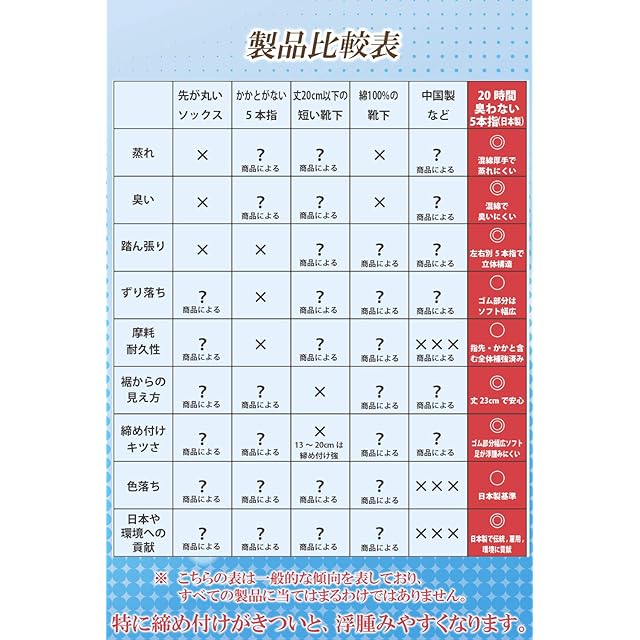 ✔【「極」の約99%消臭効果】20時間履いても臭くならないソックス「極(きわみ)」の消臭効果を確認したところ、気になる臭いの元をがっつり約96~99%消臭していました。また、10回お洗濯しても効果はほぼ変わりませんでした。ぜひ一度、お試しください!!✔【5本指で健康増進】 防臭/抗水虫/抗冷え/抗むくみ効果が期待できます✨履くほどに血流促進・足指が刺激され、ツボ押し効果で体元気に5本指を選ぶ方が増えているので突然のお座敷でも恥ずかしくありません。健康志向・清潔感があるんだなと評価されることも!✔【安心の日本人経営店舗です】何か気になることがございましたらお気軽にお問い合わせください!奈良在住の日本人店長が応対させていただきます。工場も職人も日本にある、日本製になります。