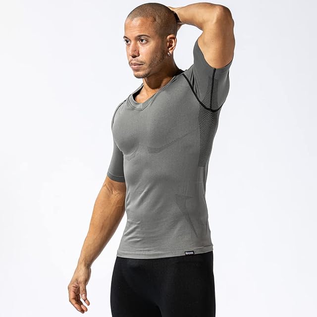 おたふく手袋(Otafuku Glove) オールシーズンインナー 半袖 Vネック デュアルクロス [吸汗速乾 消臭 コンプレッション メンズ] JW-591 グレーxブラック S-M