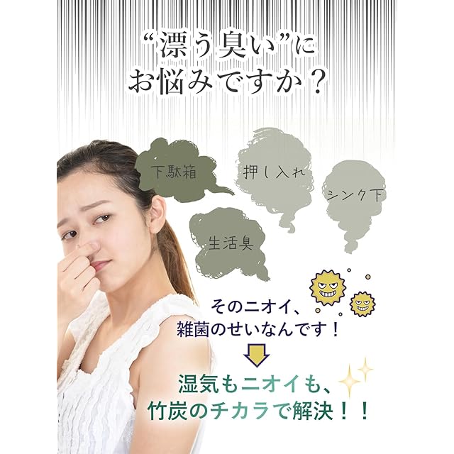 ✅【高品質な竹炭を厳選】備長炭などの木炭と比べ、約5倍から10倍もの吸着力で脱臭・調湿効果があるといわれる「竹炭」を厳選してお届けいたします。ニオイの原因となるバイ菌を活性ケイ酸の働きで抗菌効果を発揮します。インテリアなどにも溶け込むシックなデザイン仕様で場所を選ばず様々な用途でご利用いただけます。