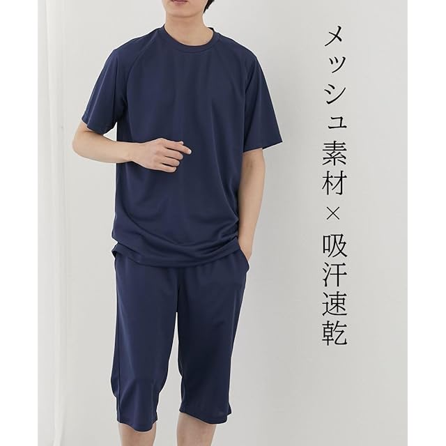 [ニッセン] メンズ パジャマ・ルームウェア 吸汗速乾・消臭テープ付きハニカムメッシュ半袖上下セット ネイビー L