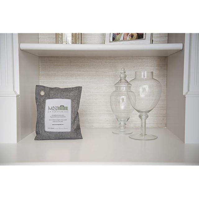 ▶ モソナチュラルエアー清浄バッグは安全で換気も必要なく、玄関、応接室、子供部屋、トイレ、たんす、クローゼット、押入れ、台所、キッチン、ごみ箱、靴、下駄箱、ランニングシューズ、納屋、自動車 車内を消臭、脱臭、調湿し清潔に維持する最も簡単にドライな無香の空間を作り上げる、おしゃれで素敵な麻生地に包まれた多孔質の最高品質竹炭200gです。 備長炭 以上、銀 、イオン に勝るとも劣らない消臭効果は日本食品分析センターの試験でも実証済みです。また、置き型モソバッグは利便性のために左上隅には吊下げホール(リング)も取り付けられています。猫(ネコ)犬(イヌ)のトイレシート(トイレシーツ)消臭にも効果的です。