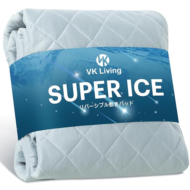 VK Living 敷きパッド 夏用 シングル リバーシブル 【SUPER ICE】 冷感 帝人TEIJIN中綿 しきぱっと 24時間持続制菌消臭 ひんやり 二重除湿速乾 シーツ オールシーズンで使える 吸湿速乾 洗える ベッドパッド 防ダニ 抗菌防臭 100×200cm ブルーグレー