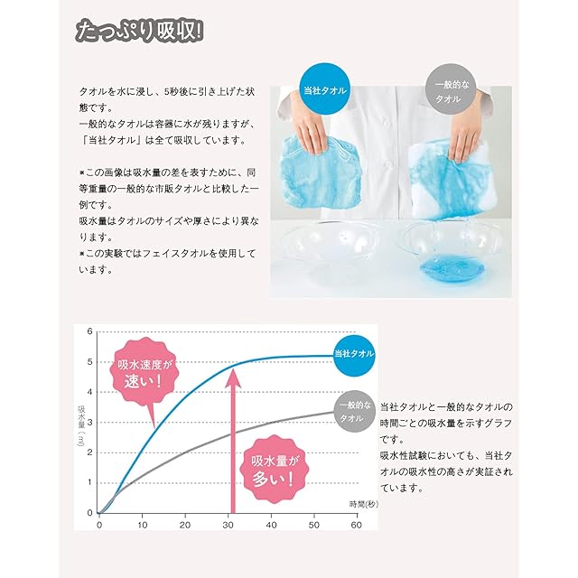 【抜群の吸水性と速乾性】綿の素材より吸水性が優れます。マイクロファイバー素材の表面は数えられない隙間があり、その隙間に大量の水分を素早い吸水できます。髪や肌にそっと当てるだけで水分が吸収される素材であり、また汚れも落としやすい特徴があります。隙間に取り込まれた空気が水分を拡散させるので、速乾性のポイントで、フェイスタオルの雑菌を抑え、健康を保つことができます。