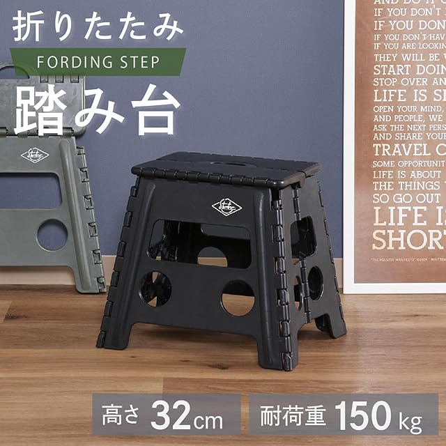 不二貿易 折りたたみ椅子 踏み台 ステップ 幅37×奥行30×高さ32cm ブラック アウトドア コンパクト スツール 耐荷重150kg 77522