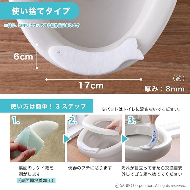 【裏面は弱粘着仕様】便器に貼るだけで、便座と便器のすきまをカバーします。汚れたらゴミ箱へ捨てるだけ。掃除の手間を省けます。