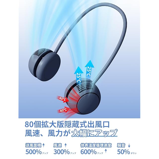 【超ミニサイズ・折り畳み収納】首掛け扇風機 ネックファン 携帯 小型 ミニ ポータブル 超軽量 羽根なし 静音 コンパクト 大風量 ハンズフリーファン モバイル扇風機 360°自由調節可 両手解放 長時間連続稼働 U型 Type-C充電式 節電 熱中症/高温対策/マスク蒸れ対策/花見/花火大会/防災グッズ/通勤通学/旅行/釣り/室外作業などに最適