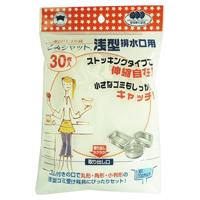 Hogdseirrs ボンスター 水切りゴミ袋 ごみシャット 浅型排水口用 30枚入り ストッキングタイプ 伸縮自在でで丸型・角型・小判型の浅型器具にぴったりフィット M-297